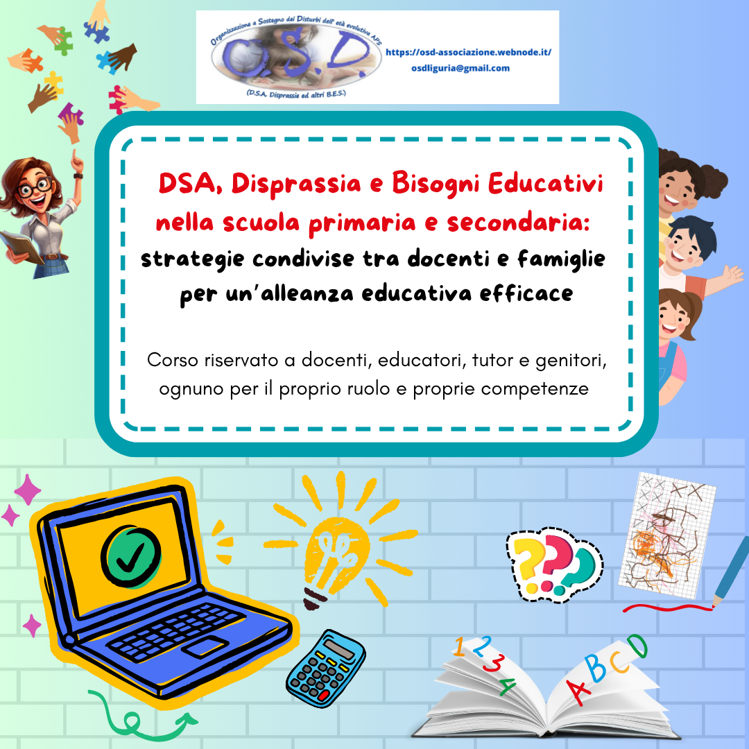 Un percorso di formazione per costruire ponti solidi tra scuola, famiglie e professionisti, affrontando insieme le sfide educative di alunni con DSA, Disprassia e altri BES.